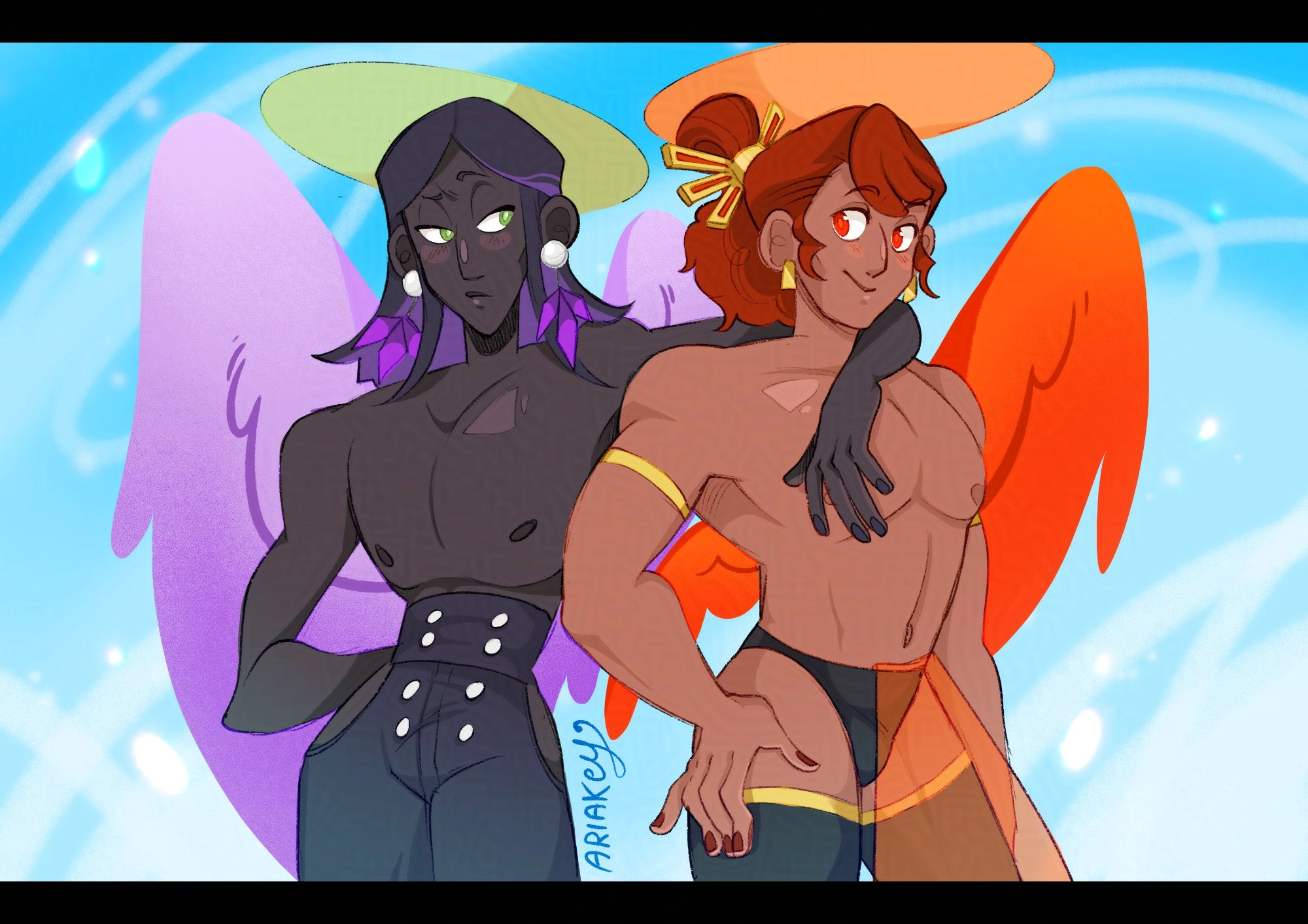 Akachi and Philo. two cupid angels in the comic i'm making: Obnubilar (you can read it weekly on my carrd or comicfury account) plus if you're italian you can buy the physical copy! - Ariakey