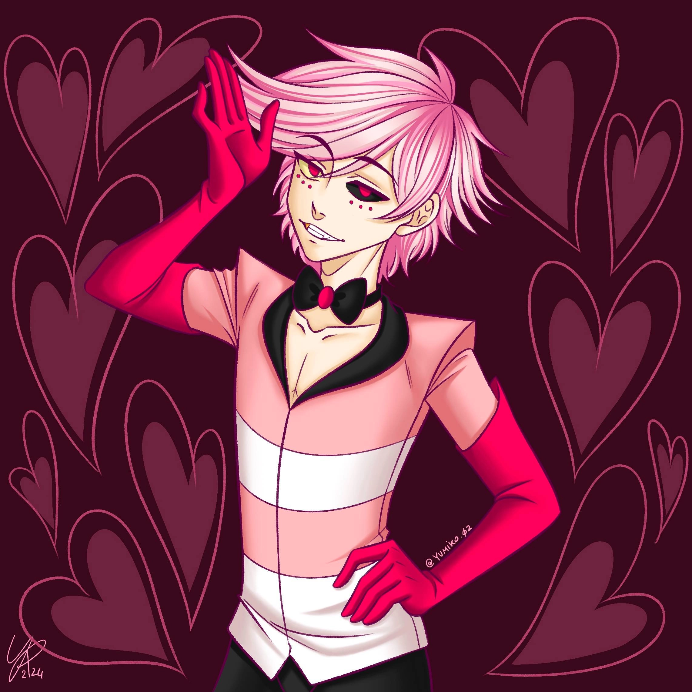 💗Angel Dust💗 ~ A fanart I did for valentine's day, I devices to represent a human version of Angel Dust in my own style, and this time I like how it turned out, so I'm really proud 😁