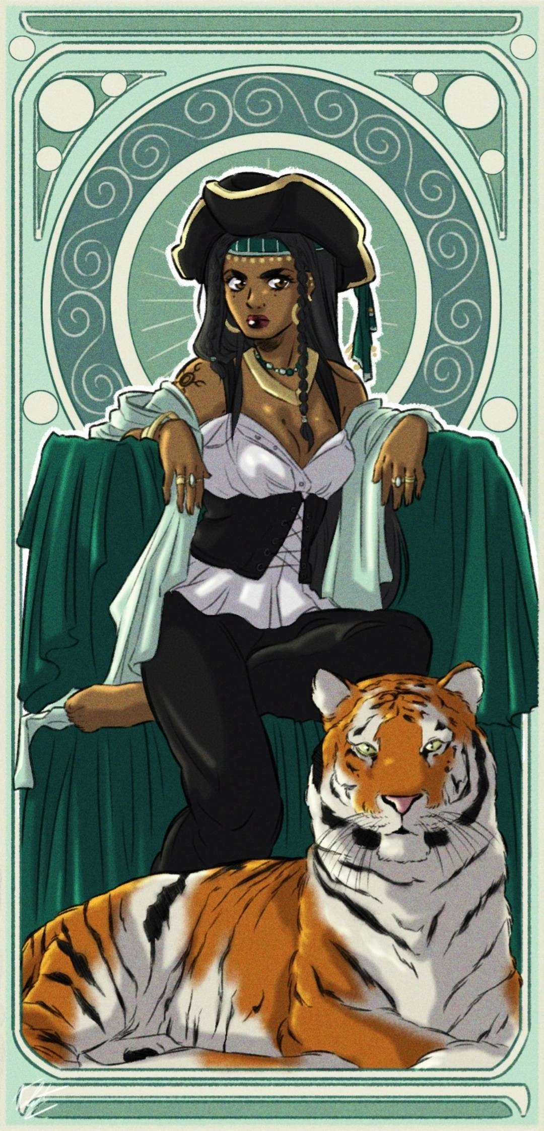 ~Amanthi~ She's a mysterious character. All I can say is that she's the Captain of a pirate's crew. Ans her pet is a giant tiger, named Xiun Dae.