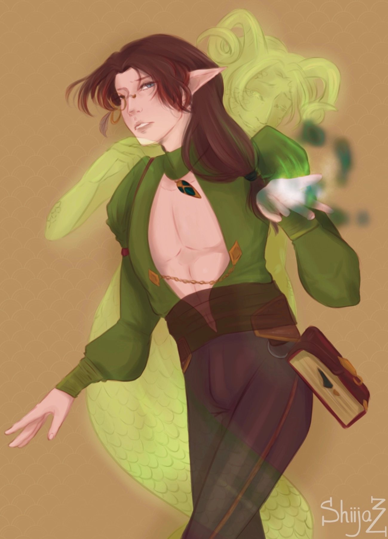 He’s Kin, my bestie OC 🥹 (he’s a warlock so that’s why he have the surprise behind him lmaooo) we do a random art trade and I randomly have her OC ahahah