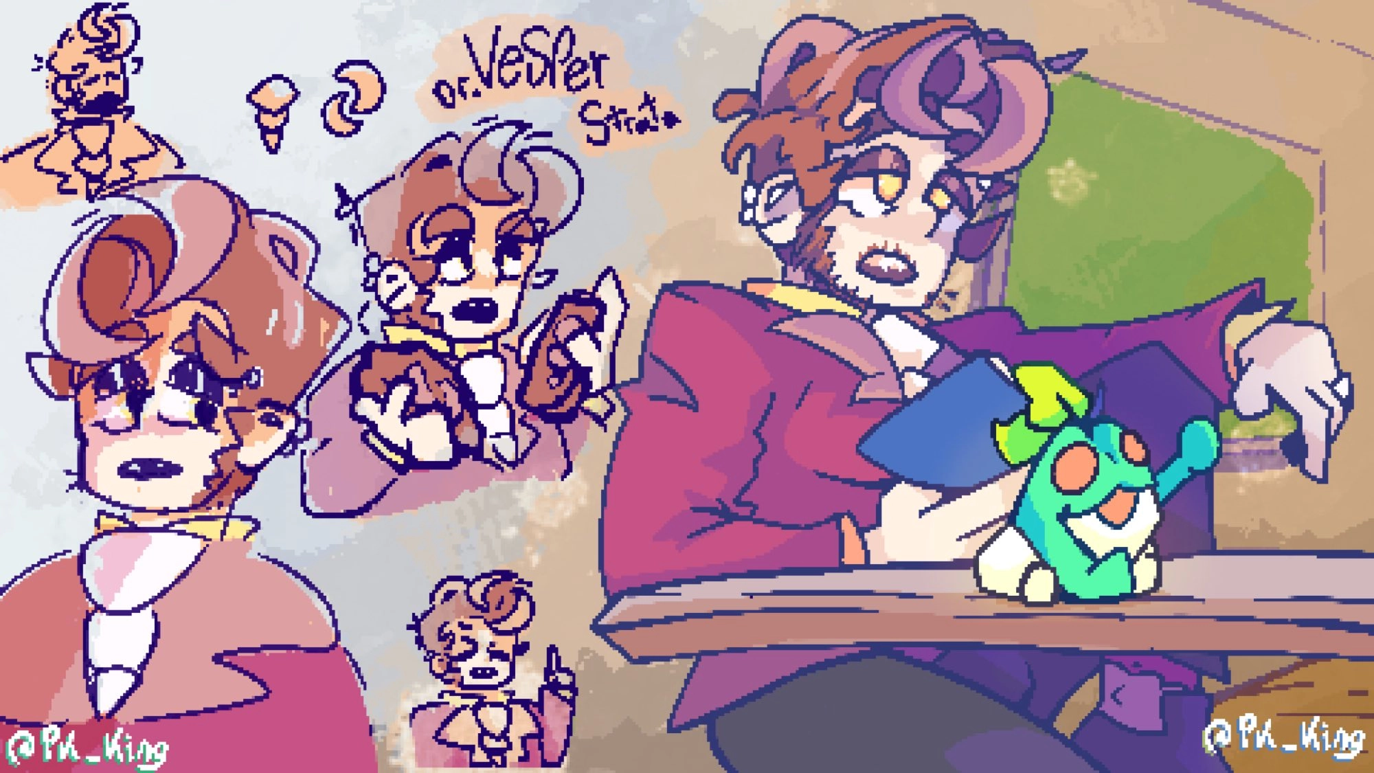Fakemon fossil scientist, Dr. Vesper Strata. 1 key art, 4 smaller poses