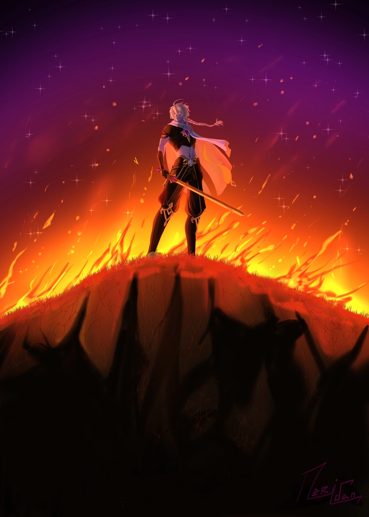 Fan art of Aether from Genshin Impact, I wanted something colorful and epic 🔥