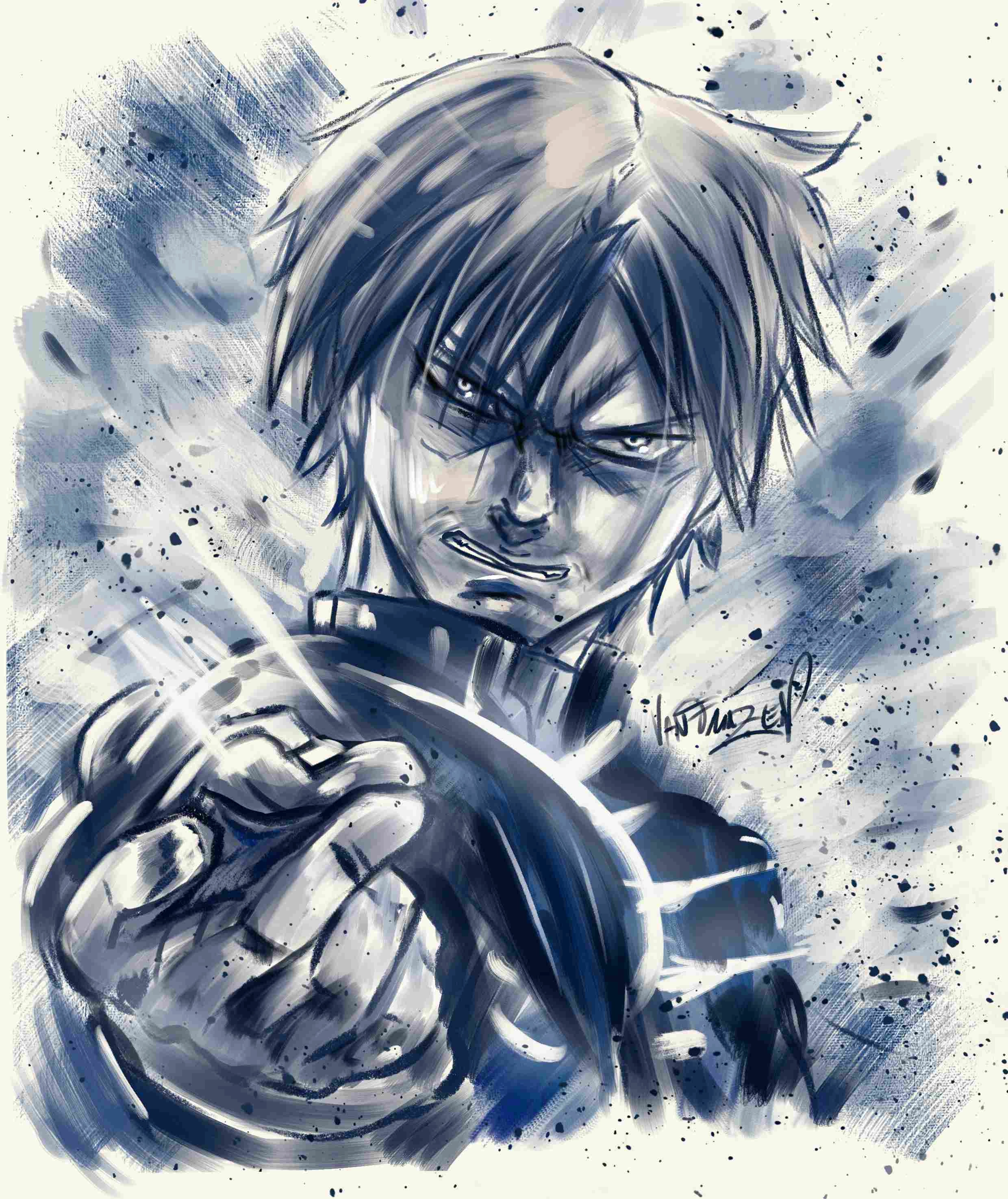 Roy Mustang Portrait of Roy in blue ink with sepia background