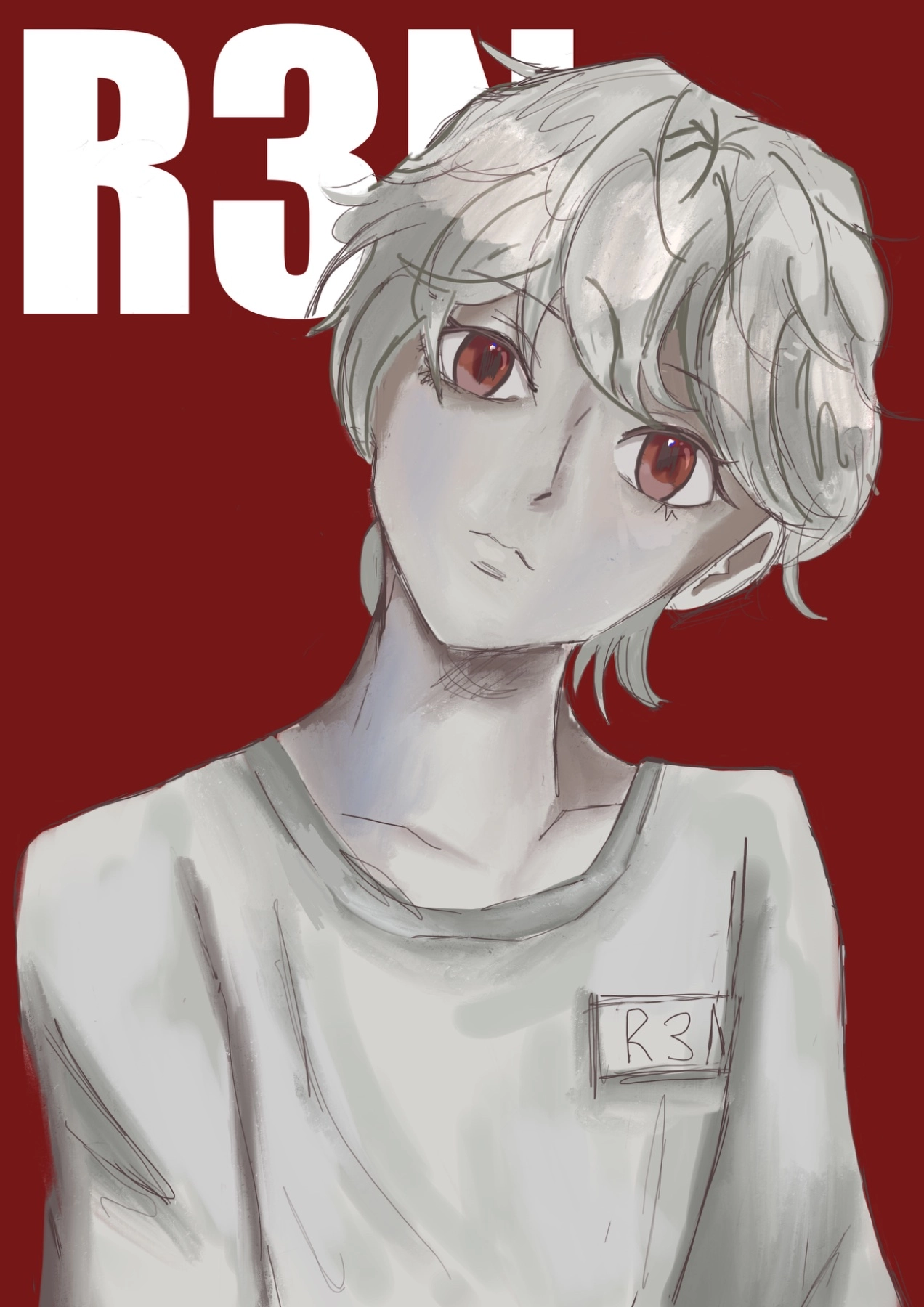 headshot drawing of my oc R3N