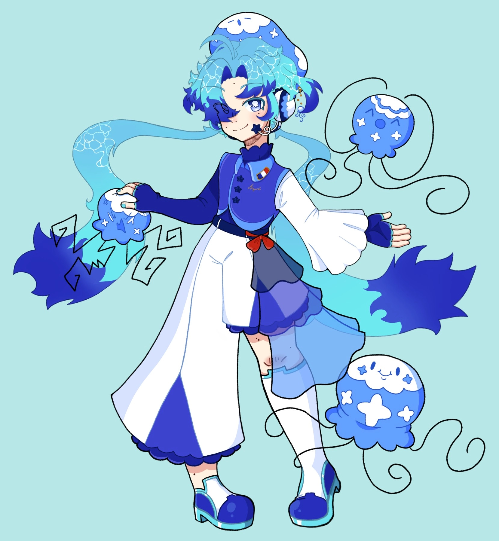 Azuré is a Vsinger, precisely an Utauloid, and her nationality is french. Their design is inspired by jellyfishes and I'm not so very inspired for this description TvT