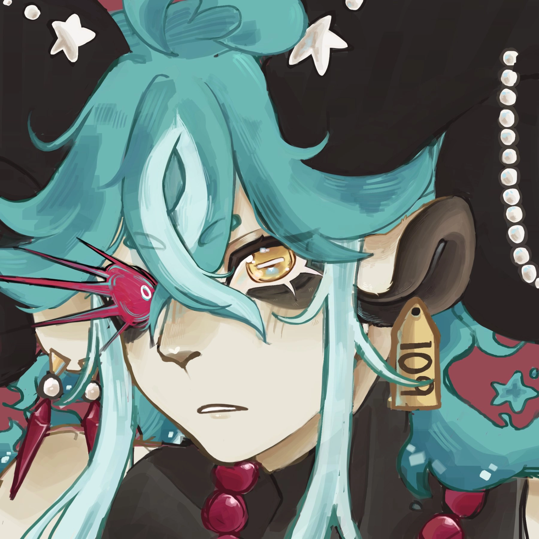 Headshot of my fursona, I'm very happy with how his redesign came out 🐑🫀