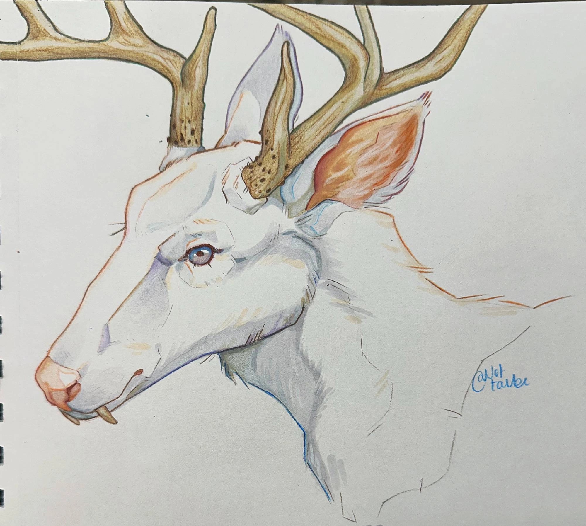 traditional drawing of a deer using Ohuhu and Prismacolor