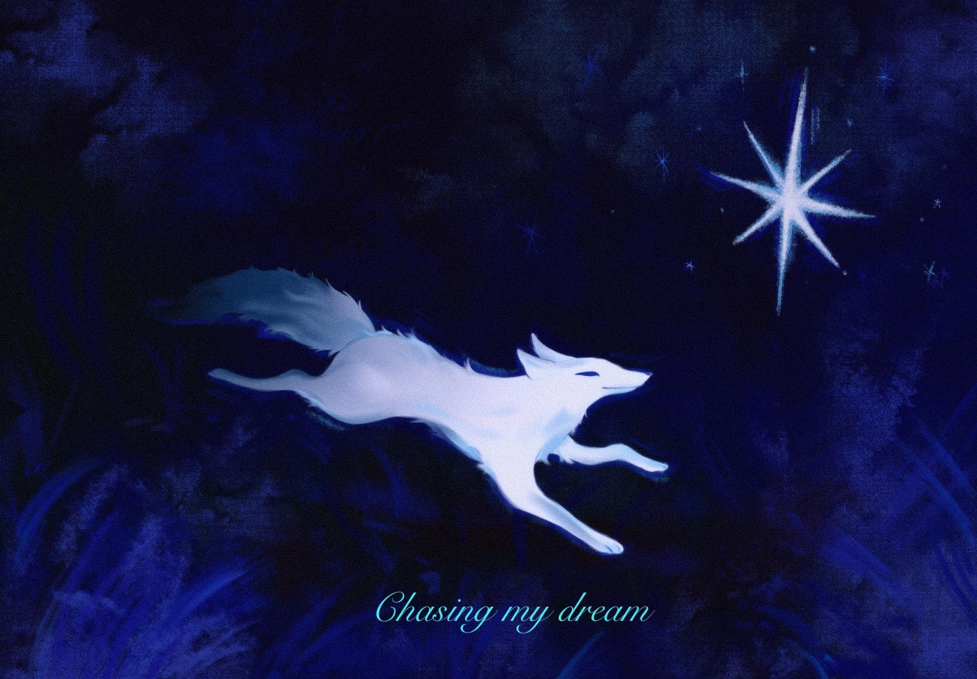 Chasing my dream, depicting a picture of a white fox chasing a star which is a metaphor for its dream and purpose ;)