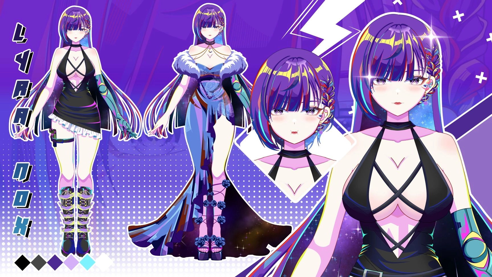 High-quality Vtuber Model Illustration (Fullbody + Expressions + Outfit Variations) in anime style. Perfect for Live2D rigging, PNGtuber, or debut showcase. Comes with clean cel shading, detailed design, and transparent PNG.